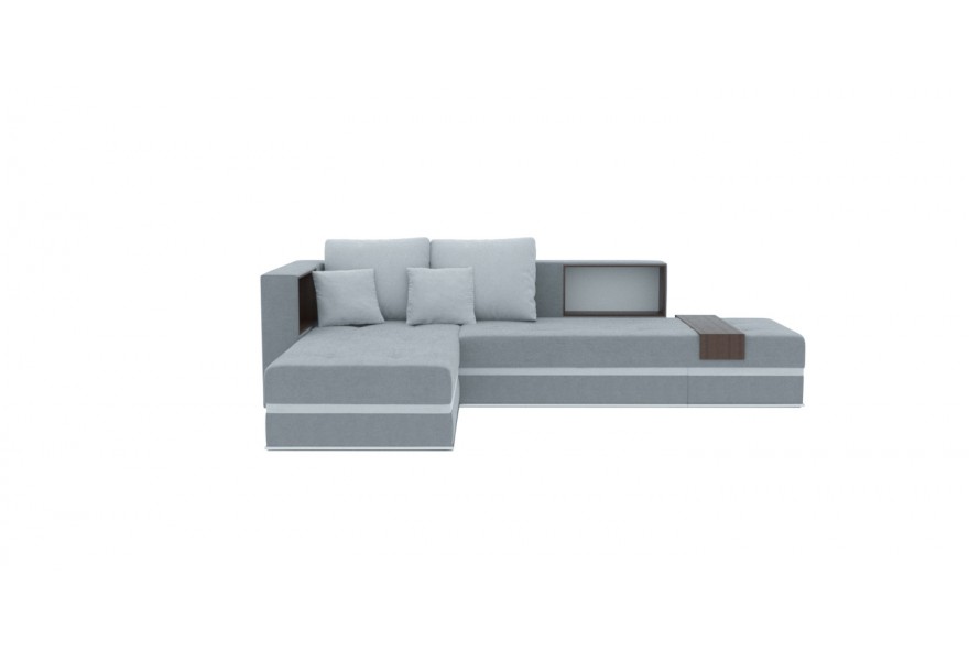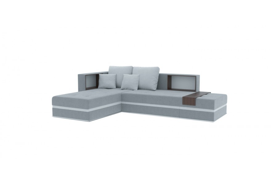 Кутовий диван ВІКОМеблі Paris / Париж в сірому кольорі – цікава і стильна новинка, яка не залищить байдужим нікого. Незвичний дизайн та додаткові вставки на спинці, які слугують поличками, а також накладний столик з ламінованого ДСП, який розміщений збоку на сидінні (можна використовувати як підставку для ноутбука чи телефона) - особливість цієї моделі. Кутовий диван підходить для щоденного сну, оскільки наповнення - пружина бонель, букові ортопедичні ламелі та пінополіуретан підвищеної щільності, що надає ортопедичності дивану, а розмір спального місця 200x160 см дозволяє забезпечити комфортний сон для Ваших гостей. Регульовані підголівники дивану можна розмістити в будь-якому положенні на Ваш вибір.