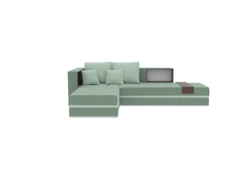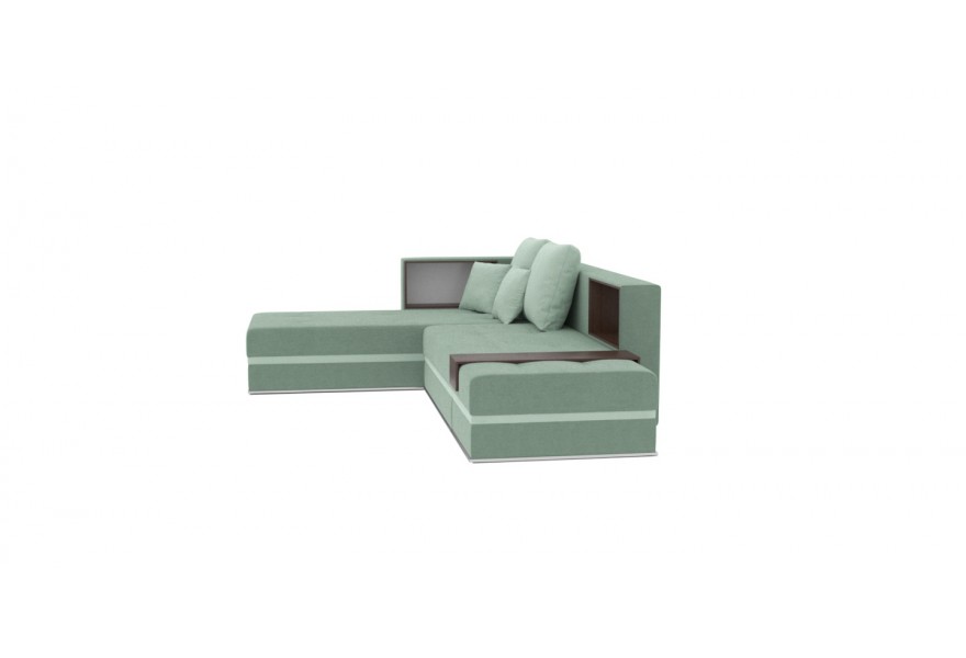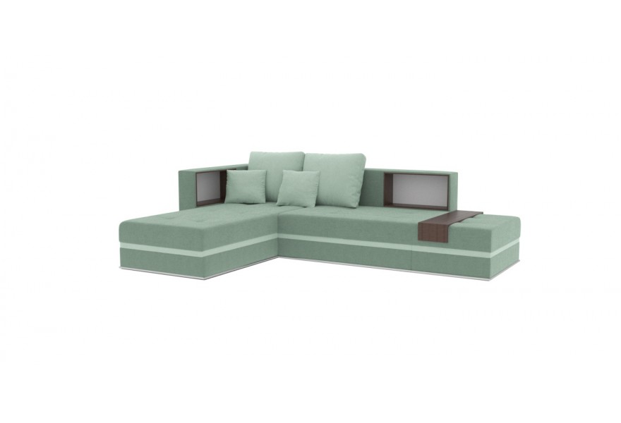 Кутовий диван ВІКОМеблі Paris / Париж в сіро-блакитному кольорі – цікава і стильна новинка, яка не залищить байдужим нікого. Незвичний дизайн та додаткові вставки на спинці, які слугують поличками, а також накладний столик з ламінованого ДСП, який розміщений збоку на сидінні (можна використовувати як підставку для ноутбука чи телефона) - особливість цієї моделі. Кутовий диван підходить для щоденного сну, оскільки наповнення - пружина бонель, букові ортопедичні ламелі та пінополіуретан підвищеної щільності, що надає ортопедичності дивану, а розмір спального місця 200x160 см дозволяє забезпечити комфортний сон для Ваших гостей. Регульовані підголівники дивану можна розмістити в будь-якому положенні на Ваш вибір.