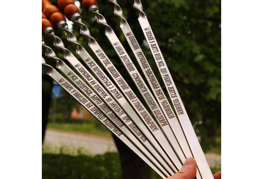 | Тип | Шампури з дерев'яними ручками та індивідуальним гравіруванням |