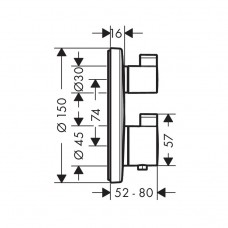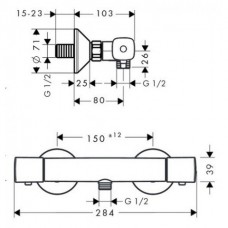Проекція 177 мм; Швидкість потоку для струменя ванни при 3 бар: 23 л /хв Витрата ручного душа при 3 бар: 15 л / хв Картридж термостата, запірний / відвідний клапан