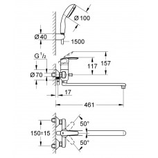 Проекція становить 177 мм; Швидкість потоку для струменя ванни при 3 бар: 23 л / хв Запобіжник при 40 ° C Обмеження температури регулюється Є зворотній клапан